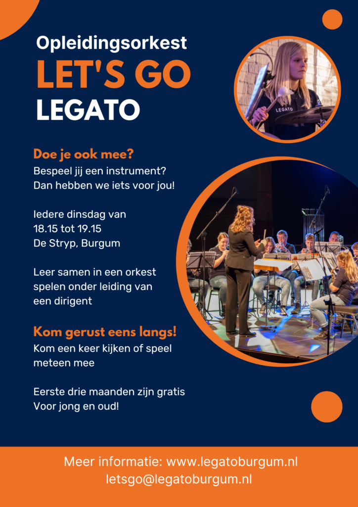 Interesse? Neem dan contact met ons op via het contactformulier of mail naar letsgo@legatoburgum.nl